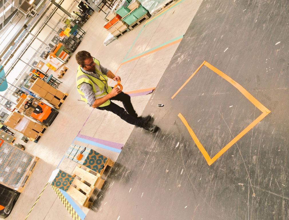 The idea to use tape emerged from my work experience as a technician in art galleries across London, where I was working to support my study. Tapes offer flexibility which make them extremely easy to apply to smooth or uneven surfaces. They also can be used to create three-dimensional effect artworks and illusionistic trompe l’oeil perspectives. Tapes are great to explore concepts of line and space from organic forms to man-made structures.
